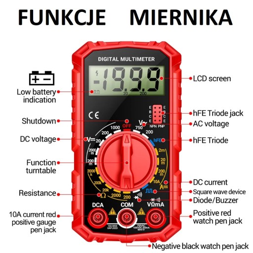 Ten cyfrowy multimetr oferuje szeroki zakres
