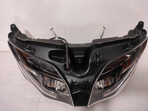 Oryginalny reflektor Yamaha FJR 1300 z doświetlaniem zakretów. Ledy sprawne, świeca. Nadłamany jeden z uchwytów oraz brak korka na wkręt- dwa ostatnie zdjecia. Szkło bez rys i zadrapań, Obudowa tył bez pęknięć.
