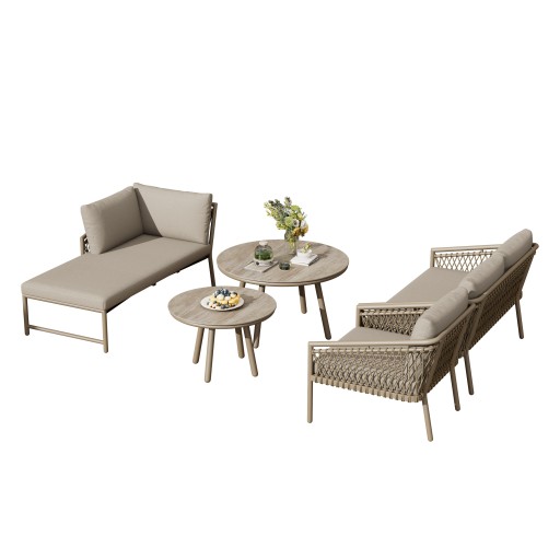 Modern Rope Garden Set w/ Cushions, Patio & Balcony Sofa, Khaki