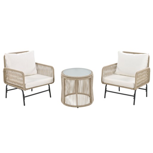 Beige Rope Garden Set w/ Iron Frame, 2 Sofas & 2 Tables - 6PC