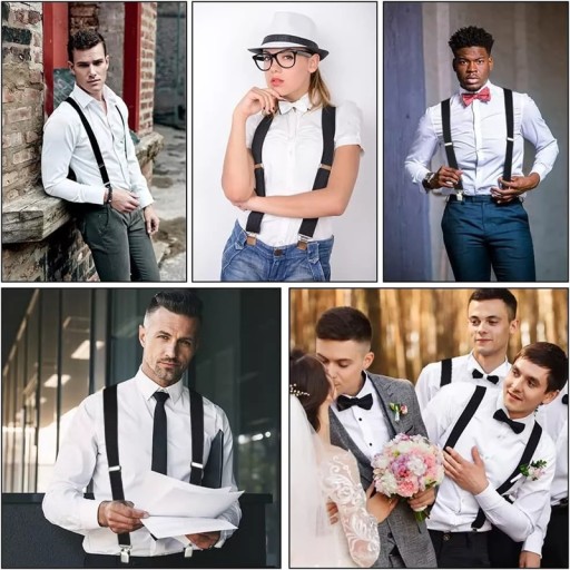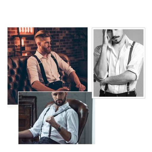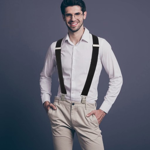 Szerokość męskich klamer wynosi 3,8 cm, a długość można regulować w zakresie od 32 do 43 cali/80-110 cm. Pasek na ramię jest łatwy do regulacji i pasuje do większości męskich sylwetek, nadaje się do spodni, garniturów, spodni roboczych, dżinsów i szortów.