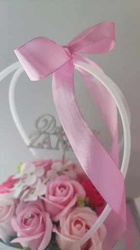 Ozdobne pudełko w kształcie koszyczka w kolorze różowym- holograficzna czyli taka zmieniająca kolor, wypełnione różami to znakomity prezent dla każdego nauczyciela...który sprawi obdarowanej osobie mnóstwo pachnącej radości...