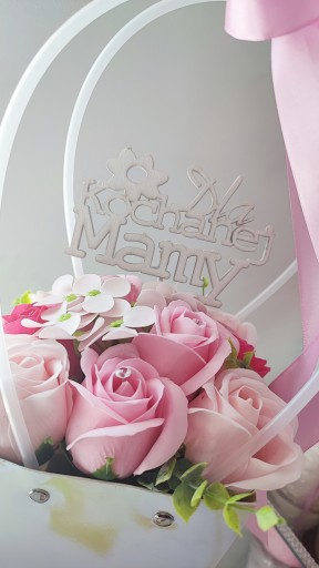 Koszy dostępny z pikiem z napisem "Dla Kochanej Mamy"