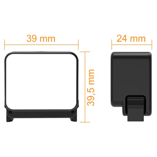 - Wymiary: 39 mm x 39,5 mm x 24 mm.