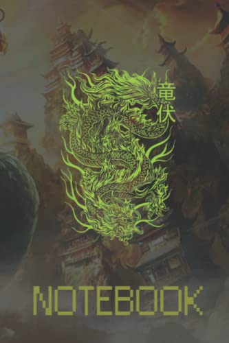 Notebook 6"x9" and 120 Lined Paper: Japanese Green Dragon Aesthetic Grunge Asian gift for Men Women Kids or Art lovers