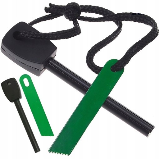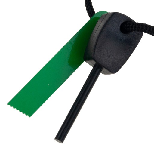 ✅ Każde krzesiwo posiada w komplecie sznureczek oraz stalową blaszkę, która ma przygotowane 2 krawędzie do pocierania - prostą i ząbkowaną.