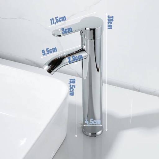 Wysoka chromowana bateria umywalkowa nablatowa łazienkowa