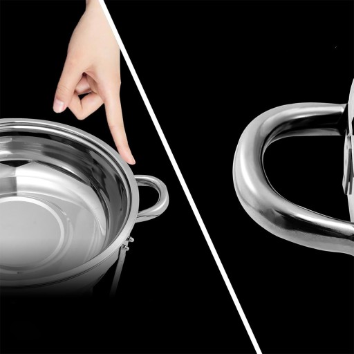 ☑️Łatwe w użyciu i konserwacji: Uchwyty na każdym uchwycie na przybory kuchenne zapewniają wygodny i pewny chwyt, dzięki czemu można bez problemu przenosić przybory kuchenne, a wyściełane miski i pokrywki ze stali nierdzewnej sprawiają, że czyszczenie staje się łatwizną!