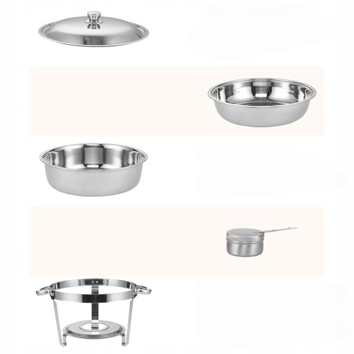 ☑️Okrągły podgrzewacz do potraw 6L ze stali nierdzewnej, pojemnik do podgrzewania bufetów, podgrzewacz do zup, bemar, pojemnik do podgrzewania potraw do restauracji, bufetów, szkół (srebrny)☑️