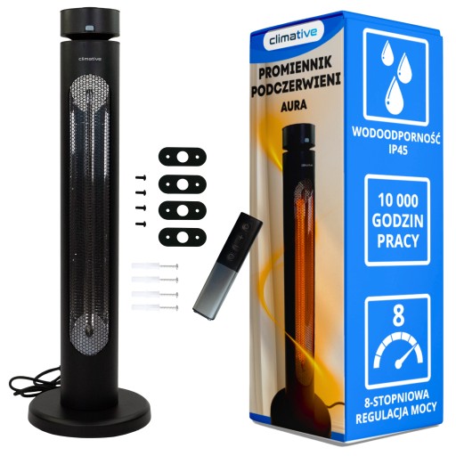 Promiennik podczerwieni ciepła elektryczny 8 poziomów 2kW AURA IR tarasowy