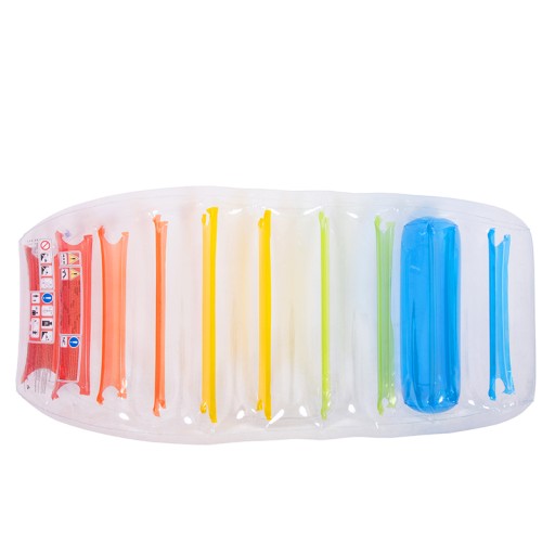 Estetyczny Design – Atrakcyjny, wielokolorowy motyw materaca nie tylko dodaje uroku, ale również przyciąga uwagę. Zdominowany przez żywe kolory, w tym odcienie pomarańczowego, żółtego i zielonego, jest idealnym wyborem na letnie wypady, doskonale komponując się z plażowym czy basenowym otoczeniem.