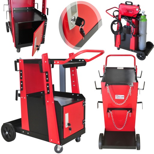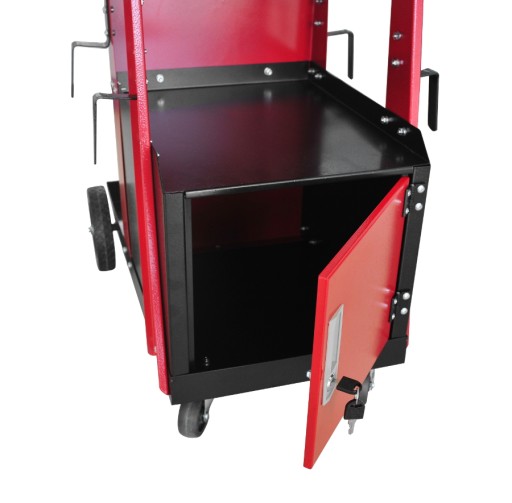 WÓZEK SPAWALNICZY Z ZAMYKANĄ SZAFKĄ DO SPAWARKI MIGOMATU Z PÓŁKĄ NA BUTLĘ