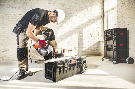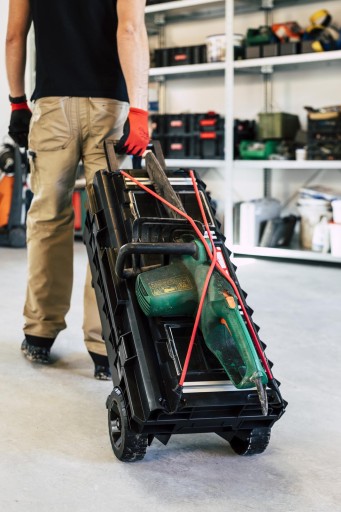 Mobilna skrzynia narzędziowa pozwala na przewożenie długich elektronarzędzi jak np. młoty udarowe, szlifierki kątowe lub mieszadła do cementu wraz z niezbędnymi akcesoriami. Jej ponadstandardowe wymiary czynią ją wyjątkowym produktem w swojej kategorii. Wyposażona jest w trzy regulowane przegrody – dwie standardowe oraz jedną przegrodę Multi, która dzięki zróżnicowanym uchwytom na narzędzia ręczne pozwala w łatwy sposób utrzymać porządek wewnątrz skrzyni.