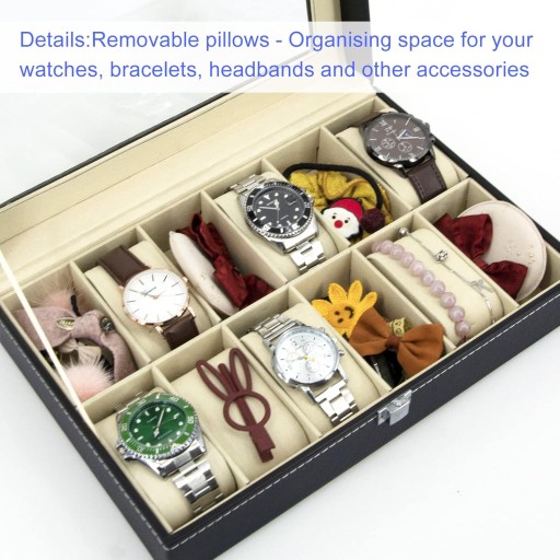 - Pudełko na zegareki etui do przechowywania organizer 12 przegródek na biżuterię