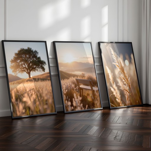 - Styl Rustykalny / Cottagecore – Złociste światło, naturalne motywy roślinne i ciepłe barwy obrazów idealnie komponują się z sielskim, przytulnym stylem wiejskim, wnosząc do wnętrza harmonię i spokój.
