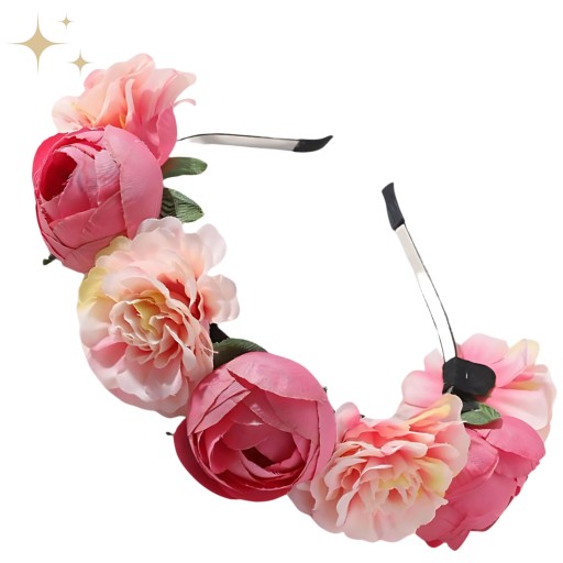 Opaska wianek Z KWIATAMI na głowę różowy Z RÓŻAMI piwonie do włosów BOHO