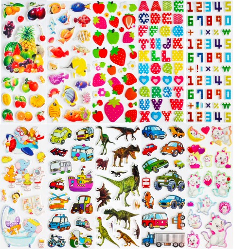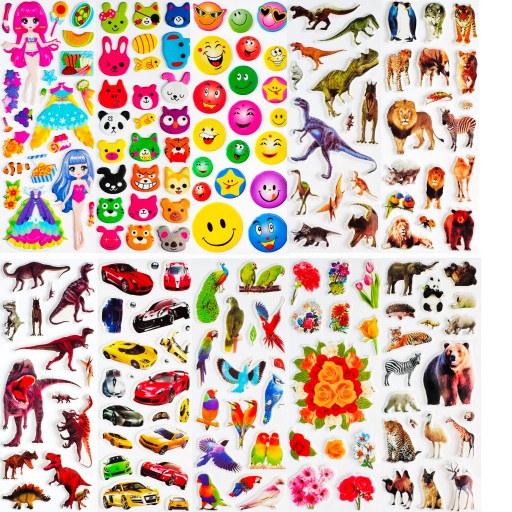 Dinozaury, rybki, samochody, motyle, oraz wiele innych pięknych naklejek. W zestawie znajduje się ogromna różnorodność motywów i stylów, które zadowolą każde dziecko. Każdy arkusz jest inny i żaden się nie powtarza, co sprawia, że dzieci mogą wybierać naklejki zgodnie z zainteresowaniami. Ten zestaw ma wszystko, czego maluchy mogą zapragnąć! Dzięki dużej różnorodności, dzieci mogą rozwijać swoją kreatywność, tworząc unikalne kompozycje i dekoracje.