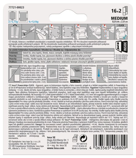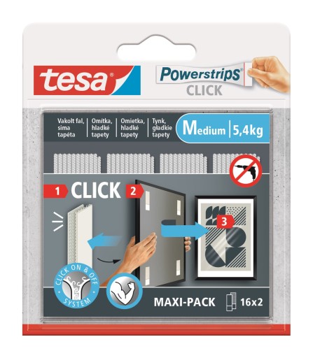 TESA POWERSTRIPS CLICK Rzepy samoprzylepne ścienne na klej 16 par rozmiar M