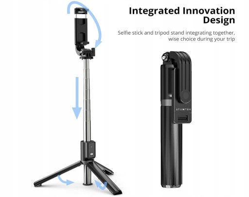 ATUMTEK selfie stick Bluetooth ma regulowany uchwyt 180 ° i obrotowy uchwyt na telefon 360 ° (obsługuje szerokość urządzenia do 3,5 cala). Dzięki wbudowanemu pilotowi Bluetooth zawsze możesz swobodnie znaleźć najlepszy kąt zdjęcia!