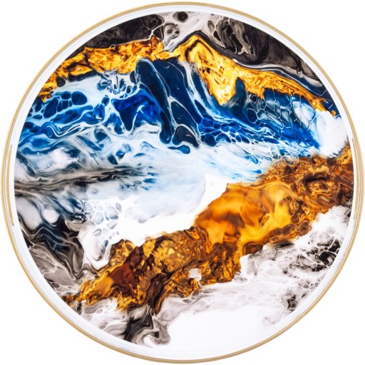 - Okrągła taca ozdobiona efektownym "marmurowym" motywem