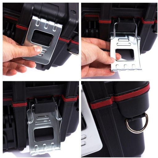 - Specjalne wyjmowane przegródki umożliwiające właściwy podział narzędzi (do 9 komór).