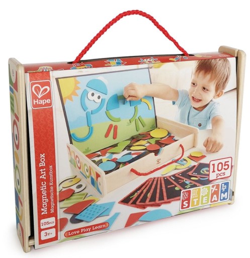 Daj się ponieść swojej kreatywności dzięki tej fantastycznej magnetycznej walizce. Wybierz spośród 91 dołączonych elementów magnetycznych o różnych kształtach i kolorach, umieść je na scenie przedstawionej na wewnętrznej pokrywie lub twórz na pustej tylnej stronie zgodnie ze swoją wyobraźnią. W zestawie znajdują się również karty z obrazkami dla inspiracji. Wykonany z wysokiej jakości, wytrzymałego materiału.