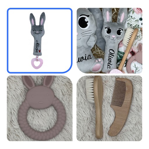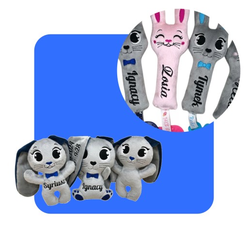 - Podaj dane jakie mamy wyhaftować na maskotce i grzechotce.