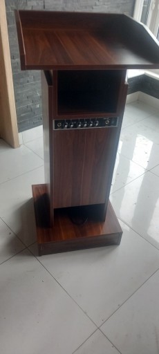 Na zdjęciach powyżej pokazane zostały mównice Prestige z naszych realizacji dla Klientów w kolorach ORZECH CALIFORNIA ORAZ ORZECH ZŁOTY.