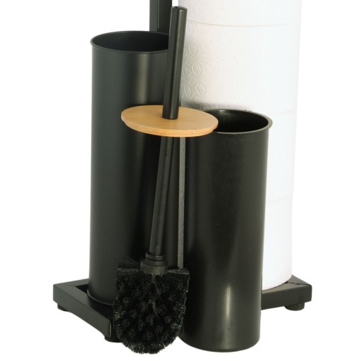 - stojak WC 3w1 ze szczotką toaletową, uchwytem na papier toaletowy oraz stojak na zapasowy papier. Szczotka posiada zabezpieczający plastikowy pojemnik chroniący przed rdzewieniem i ułatwiający czyszczenie. Antypoślizgowa podstawa zapewnia stojakowi dużą stabilność.