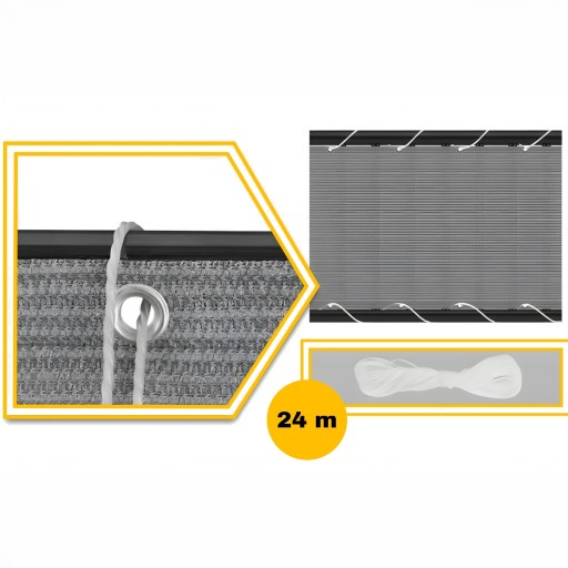 ⭕️ Aluminiowe oczka o zwiększonej odporności na rdzę, które zostały wszyte co 50 cm, zapewniają szybki i stabilny montaż osłony.