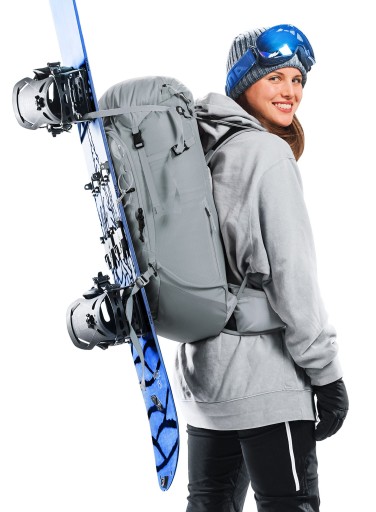 Plecak Deuter ma pojemną komorę główną z dostępem od góry, poprzez zamknięcie za pomocą klapy, oraz z boku. Plecak jest kompatybilny z 3-litrowym systemem hydracyjnym (dostępnym osobno). Model ma również kieszeń na gogle narciarskie, a także kolejną, na mapę lub paski do mocowania sprzętu. Na boku umieszczono kieszonkę na smartfona. Model ma również pętle na kijki trekkingowe lub czekan. Na pasie biodrowym znajdziesz dodatkową kieszeń. W zestawie otrzymujesz również siateczkę do mocowania kasku.