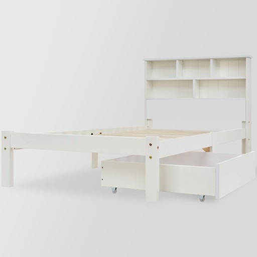 Łóżko pojedyncze z litego drewna z szufladami i ramą z listew, regał dla nastolatków i łóżeczko dla dorosłych, 90x200cm białe (bez materaca)