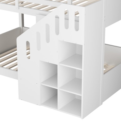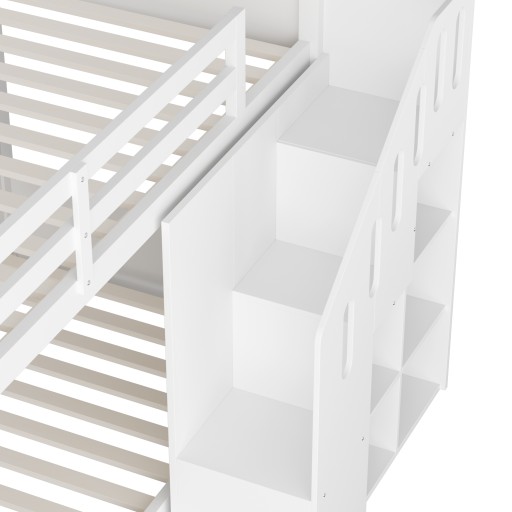 Łóżko piętrowe dla dzieci, łóżko podwójne, wielofunkcyjne łóżko dla dzieci, ze schodami i szafkami, stabilną poręczą, bez materaca, 90*200cm, biały