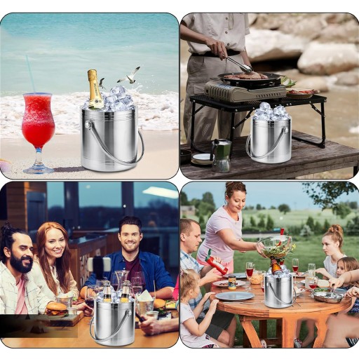 🧊Idealny do rozrywki: pojemność 2 litry, niezbędne wiaderko na lód do barów koktajlowych, przyjęć domowych, klubów, restauracji, grilli, pikników i innych wydarzeń wewnątrz i na zewnątrz, aby schłodzić wino, szampana, koktajle, whisky, wódkę, piwo, soki i inne napoje alkoholowe