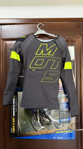 Zbroja ochronna MOTS Skin Pro Full Protector w rozmiarze M/L to profesjonalny ochraniacz dla zawodników trialowych i enduro, zapewniający maksymalne bezpieczeństwo przy zachowaniu lekkości i komfortu. Wykonana z elastycznego materiału o wysokiej oddychalności, wyposażona w komplet certyfikowanych ochraniaczy: na plecy, klatkę piersiową, ramiona oraz łokcie. Idealnie dopasowuje się do ciała, nie ograniczając ruchów, co czyni ją doskonałym wyborem zarówno na treningi, jak i zawody.