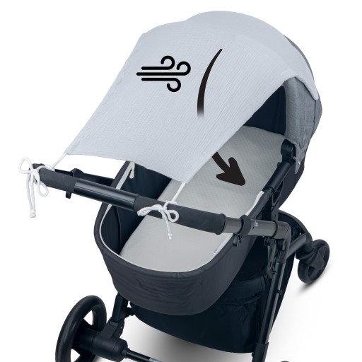 Praktyczny daszek przeciwsłoneczny wykonany z przewiewnej, tkaniny muślinowej (double gauze). Idealny dodatek do każdego wózka – chroni przed słońcem, wiatrem i zapewnia odpowiednią cyrkulację powietrza. Doskonały na spacery latem! Zapewnij swojemu dziecku maksymalny komfort i ochronę podczas spacerów dzięki naszemu materiałowemu daszkowi do wózka