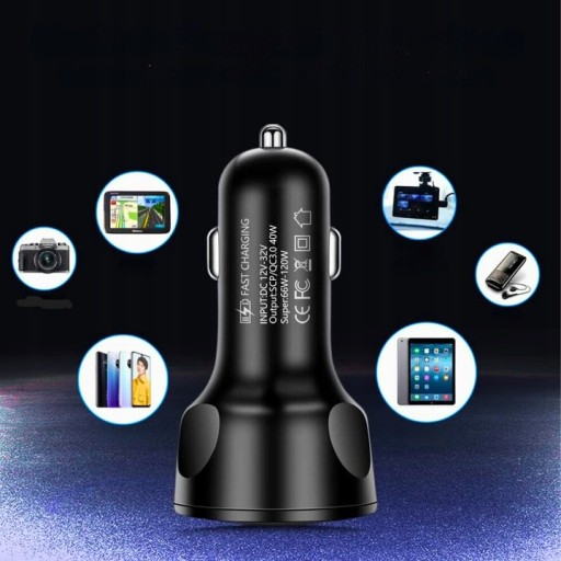 БЫСТРОЕ АВТОМОБИЛЬНОЕ ЗАРЯДНОЕ УСТРОЙСТВО 66W 3XQC МОЩНЫЙ 4XUSB 7A БЫСТРЫЙ КАБЕЛЬ 3IN1
