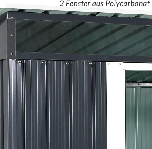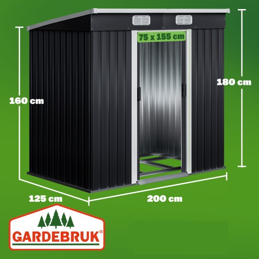 DOMEK OGRODOWY METALOWY O WYSOKIEJ JAKOŚCI Gardebruk z dachem jest idealny dla każdego, kto chce przechowywać wszystkie swoje narzędzia ogrodowe i sprzęt w jednym miejscu, bezpiecznie i sucho. Dzięki dużej przestronnej powierzchni altana ogrodowa oferuje wystarczająco miejsca na kosiarkę, grilla, meble ogrodowe, narzędzia i wszystkie inne sprzęty ogrodowe.