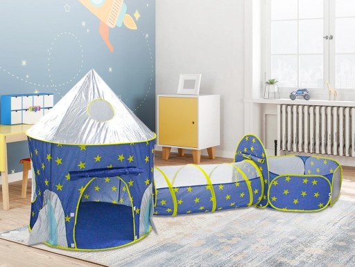 Namiot dziecięcy 3w1 Rakieta + Tunel + Basen (bez piłek) | Zestaw zabawowy do domu i ogrodu