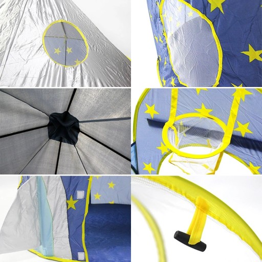 - Namiot rakieta: 105 cm (średnica) × 135 cm (wysokość)