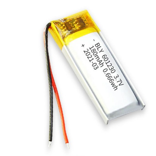 Bateria Akumulator Li-Po Li-Poly 180mAh 3.7V PCM 30x12x6mmCechy Akumulator Litowo-Polimerowy o pojemności 180mAh Akumulator stosowany w urządzeniach mobilnych takich jak tablety, nawigacje, laptopy. Często stosowany hobbystycznie w projektach DIY czy IoT. Posiada wbudowany układ zabezpieczający PCM (ochrona przed przeładowaniem, nadmiernym rozładowaniem oraz zwarciem).