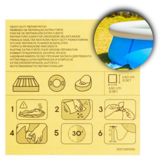 - 3 Łatka do dna basenu – 15x15 cm, by utrzymać dno w idealnym stanie,