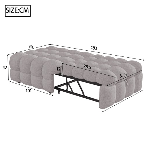 2IN1 -кроватный диван, сложенный серый пухлый, плюшевый, с набором FootRest