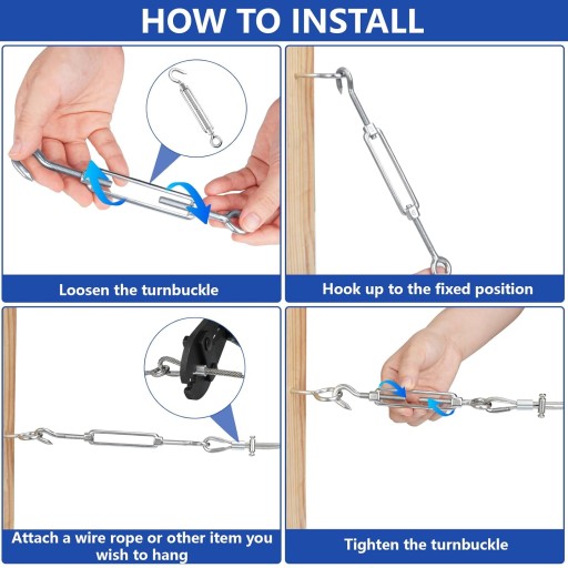 6szt. Śruba Rzymska Nierdzewna A4 Łącznik Napinacz Oko Hak M6 15-21,5 cm