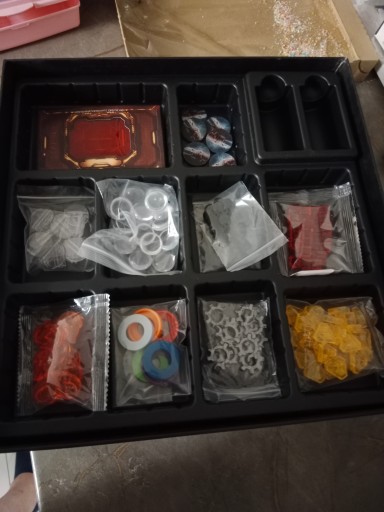 - zawarte komponenty: 1 instrukcja gry, 26 miniaturek, 1 plan meczów, 7 tablic, 2 przeglądy przestrzeni, 1 woreczek, 1 skaner, 7 kostek, 5 uchwytów na karty, 6 podstawek figurek, 22 części, 134 wkładki, 100 markerów, 374 karty