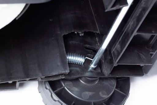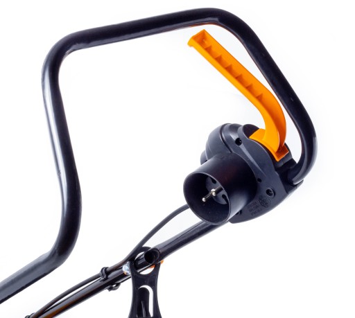 - Nóż przykręcony jest bezpośrednio na wale silnika, nie ma tutaj paska, którego zerwanie jest jedną z najczęściej pojawiających się usterek kosiarek elektrycznych.
