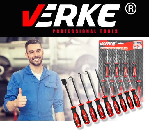 ✅ Zainwestuj w jakość i wygodę pracy – wybierz zestaw haków i skrobaków ręcznych 9 szt. VERKE i przekonaj się, jak precyzyjne mogą być Twoje działania!
