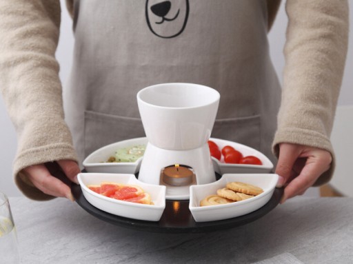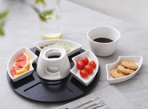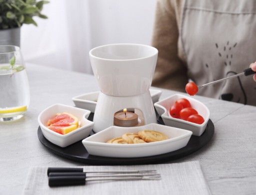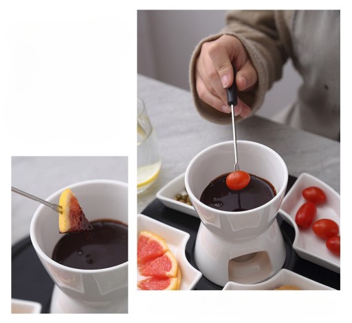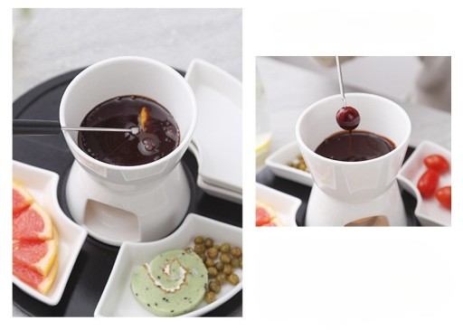 Zestaw do Fondue Topienie Czekolady Porcelana Podgrzewacz Na Świeczkę