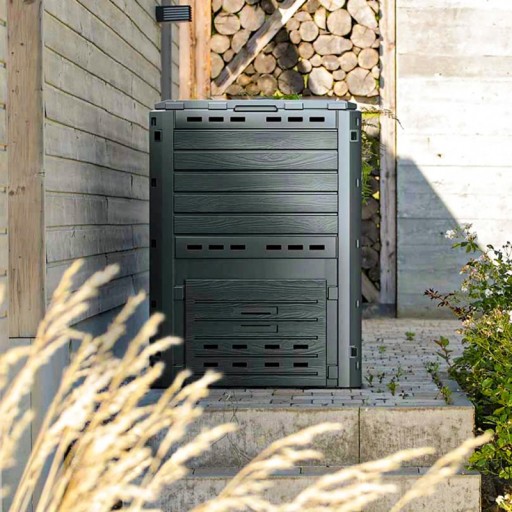Kompostownik jest kompaktowy i nie wymaga dużo miejsca. Dzięki uniwersalnej formie idealnie wkomponuje się w aranżację ogrodową.