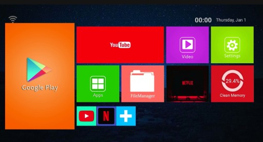 Po wyjęciu karty micro SD z kosnoli, konsola przejdzie w tryb Android Box (w tym trybie można uyżywać dołączonego pilota) z systemem Android 11, dzięki temu masz dostęp do: